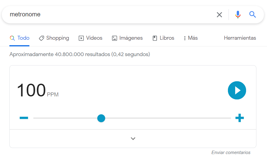 - Tocar el piano está bien, pero para cuadrar todas las notas a tiempo necesitarás un metrónomo. No te preocupes, Google también tiene. Escribe metronome y listo.