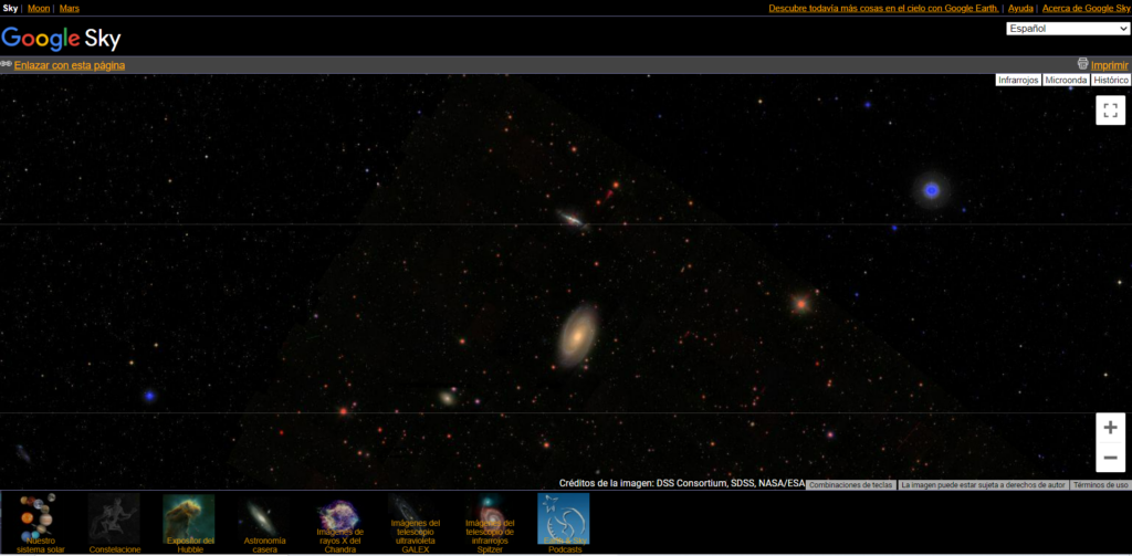 - ¡De Google al cielo!, ¿o era de Madrid al cielo? Bueno, no importa. Si te apetece descubrir otras galaxias y alguna versión en 3D de la Luna y Marte con Google Sky puedes.