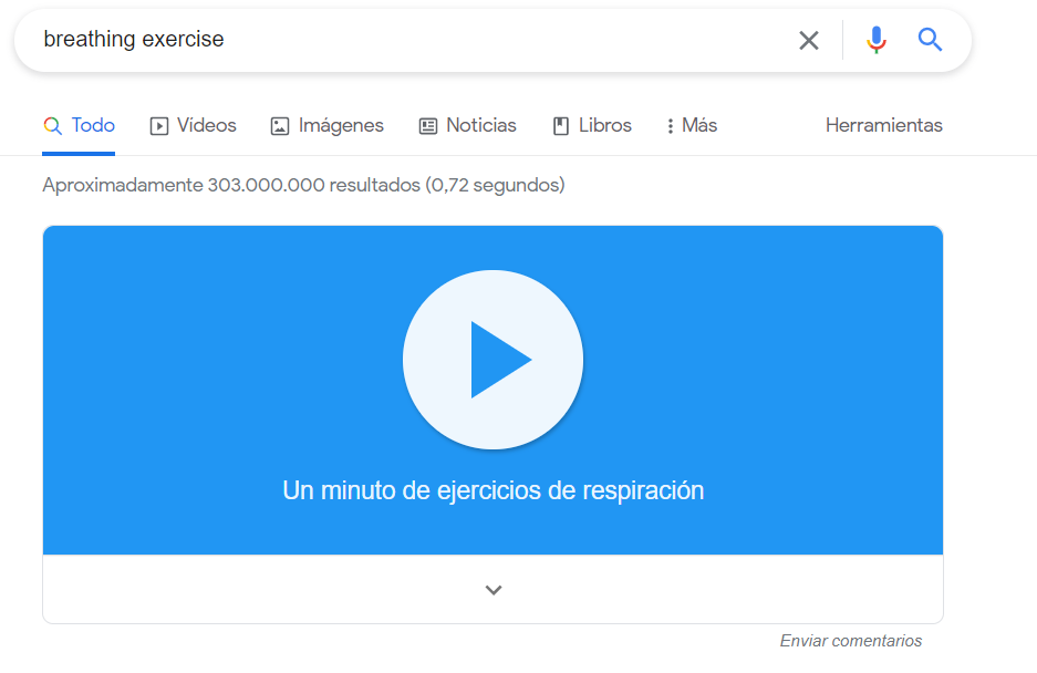 - Necesitas tomarte un respiro, meditar y Google te puede ayudar. Busca breathing exercise y podrás relajarte durante los 60 segundos que dura el ejercicio de respiración que muestra la búsqueda en pantalla.